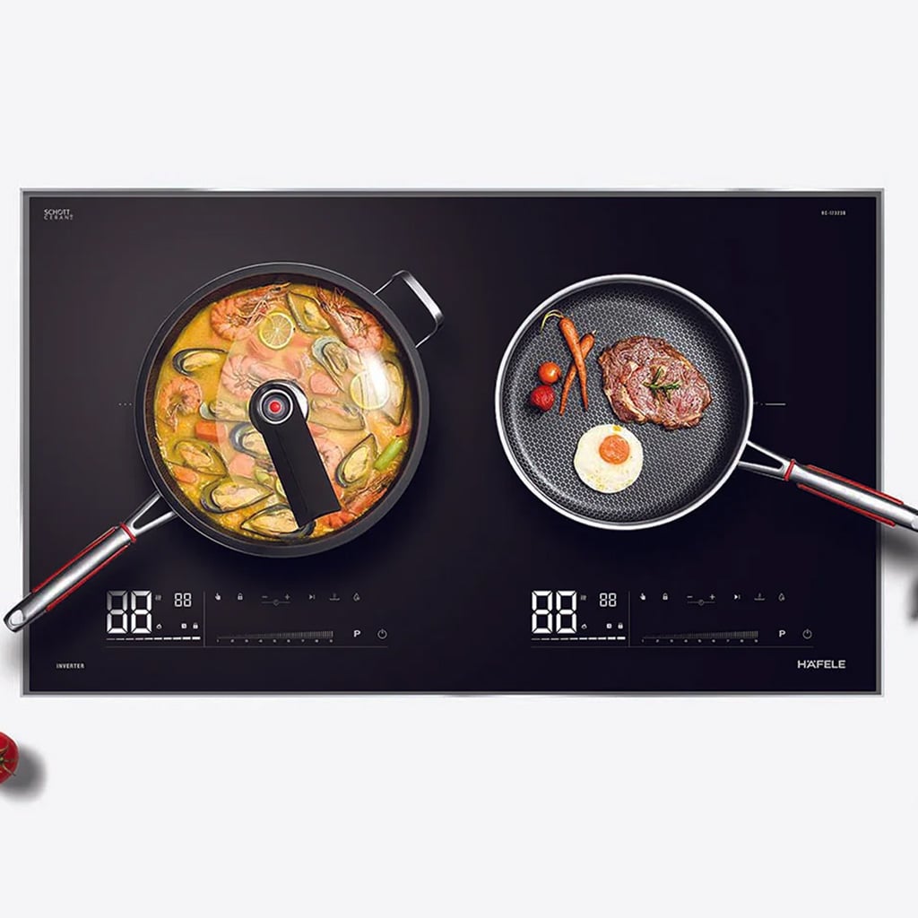 ![]() | Mặt kính schott – Made in GermanyBếp từ đôi hafele HC-I7323B 536.61.886 sử dụng mặt kính gốm thủy tính vát cạnh – made in Germany, chịu nhiệt độ cao tới 1000ºC và khả năng hạn chế trầy xước tối đa |