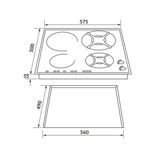 Kích thước bếp : D575 x R500mm