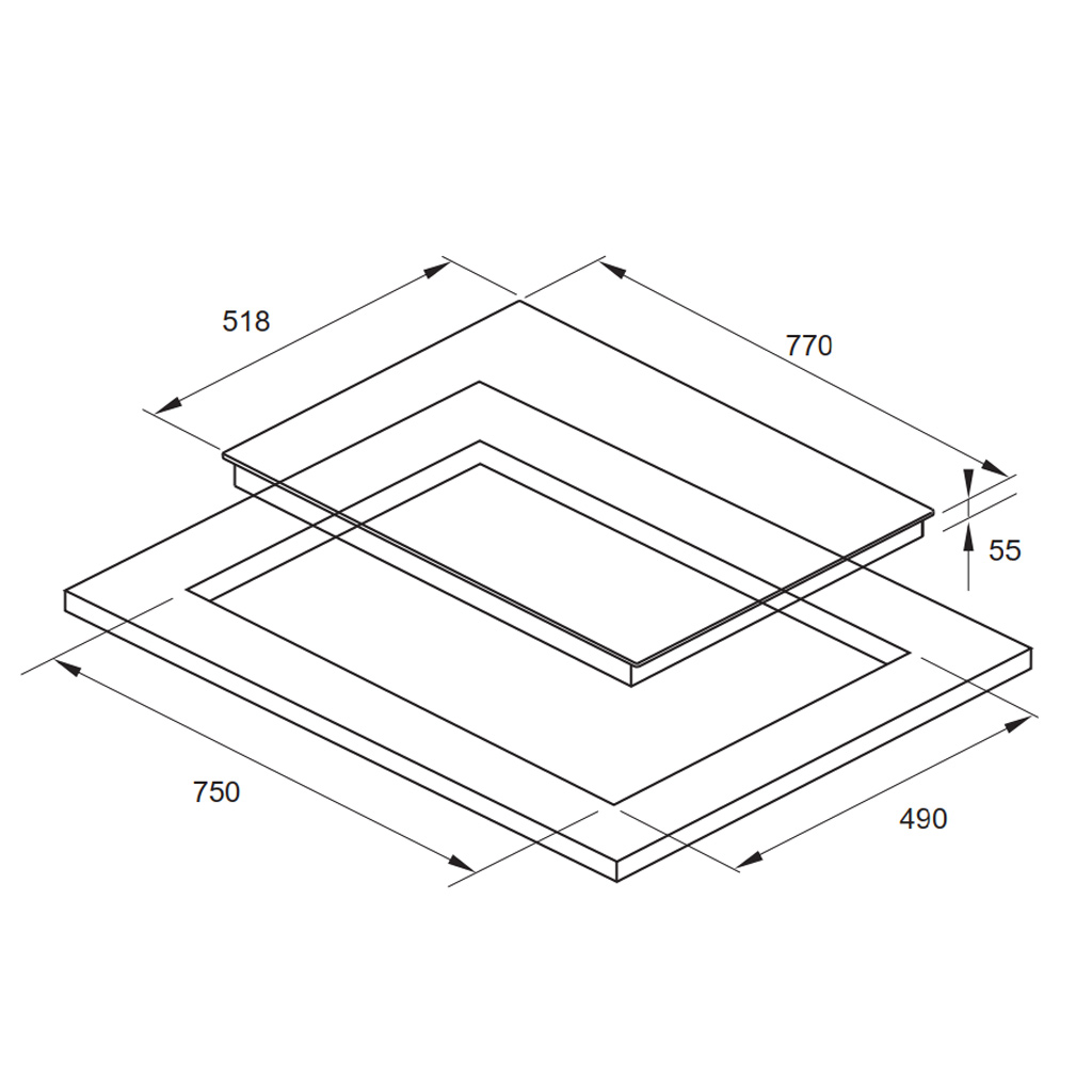 Kích thước cắt đá: 750R x 490S x 55C mm