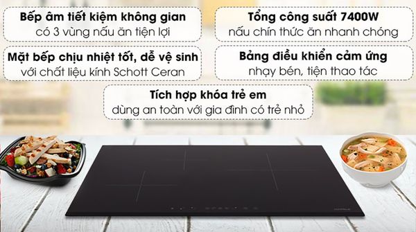 + Ba vùng nấu điện từ: