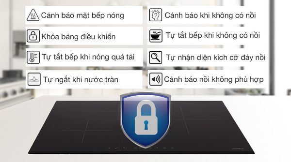 – Chức năng tự tắt bếp khi quá nhiệt độ
