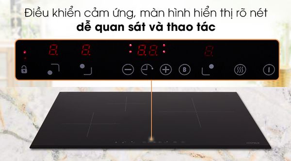 + Có chín cấp độ nấu cho mỗi vùng nấu và chức năng gia nhiệt nhanh