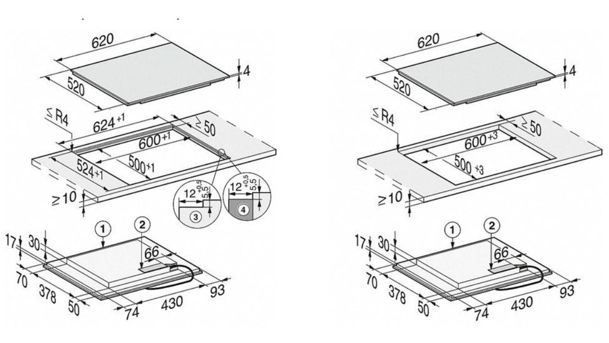 | Kích thước vùng nấu | - (1): Bên trái phía trước Ø 140-190 mm (Max: 1850 W, Max Booster: 2500 W, TwinBooster: 3000W). |
