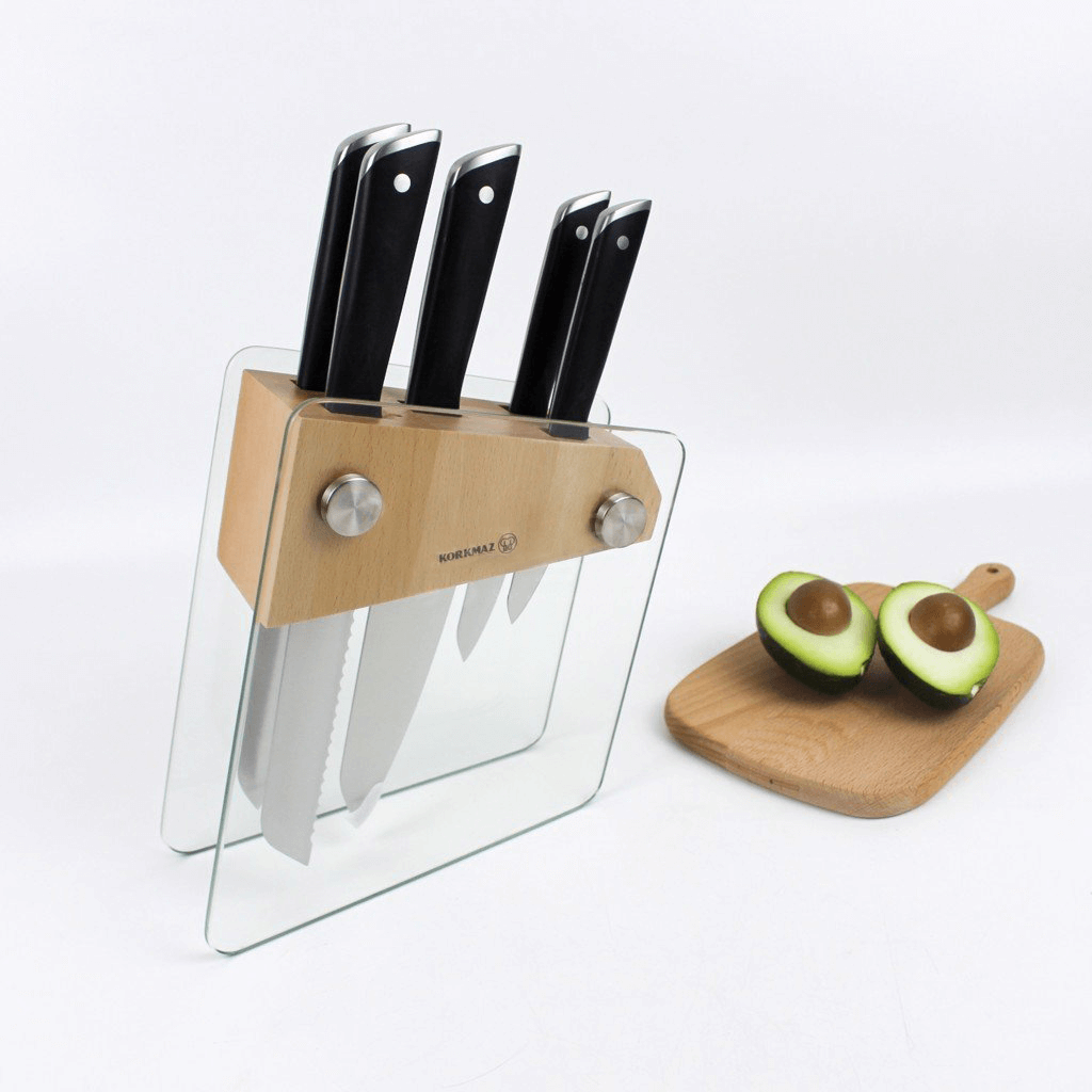 Bộ dao inox bền bỉ đến từ thương hiệu Korkmaz. Với chuôi dao được bao phủ bởi nhựa tổng hợp nên dễ dàng cắm nắm. Công nghệ cắt laser mang lại tuổi thọ và độ bền cao hơn. Thiết kế tinh tế, gọn nhẹ với nhiều kích cỡ thuận tiện sử dụng. Lưỡi dao không bị gỉ sét có độ bền cao, thiết kế sang trọng, tô điểm không gian nhà bếp.
