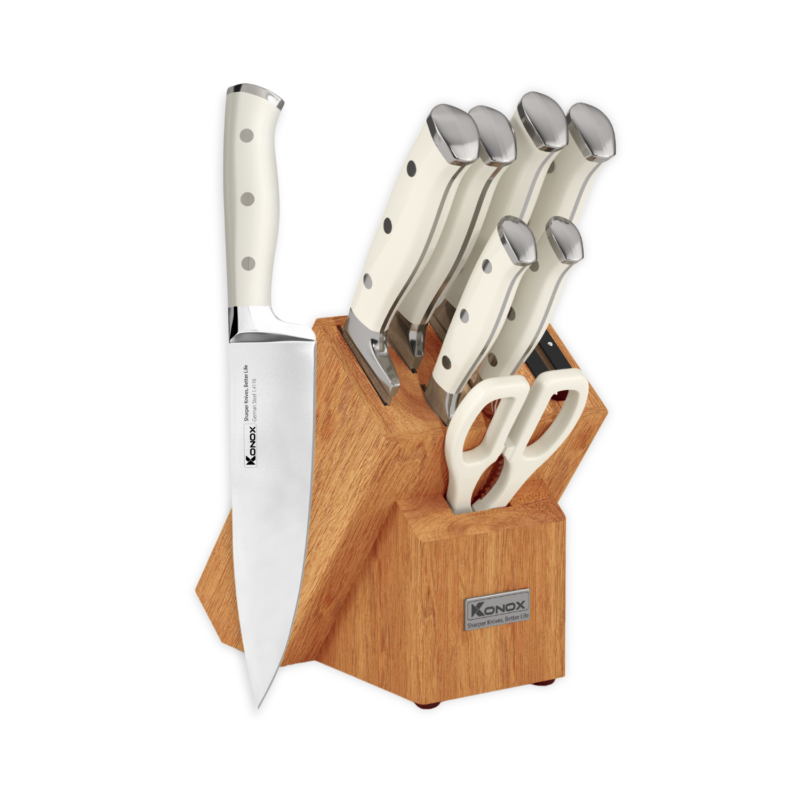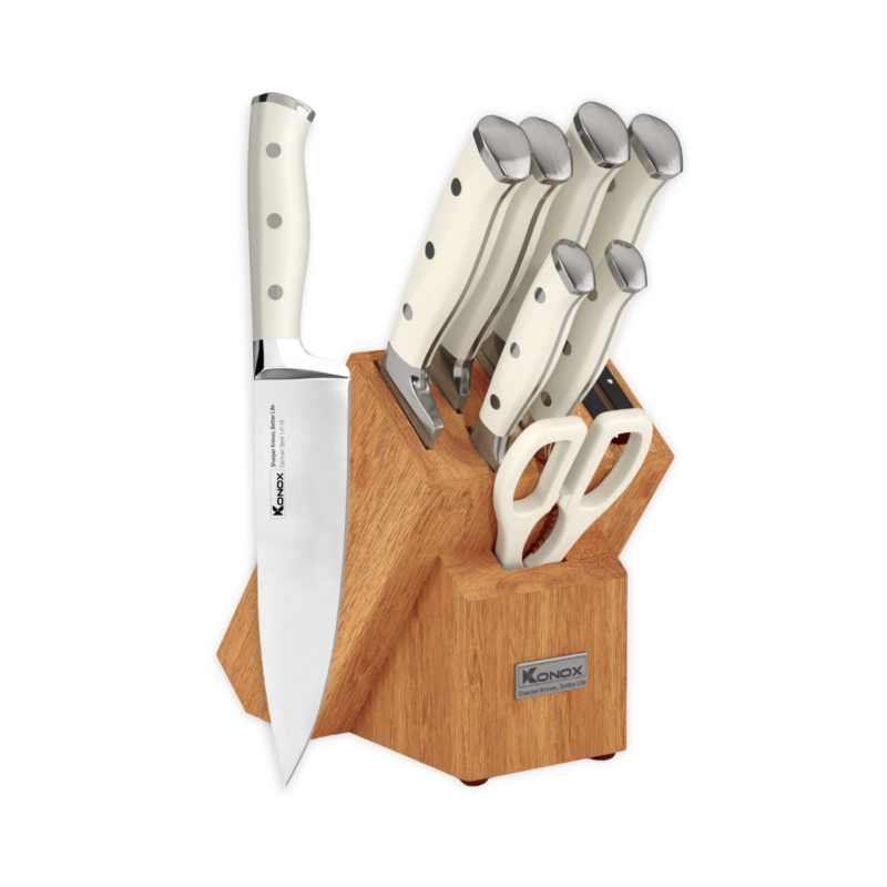Bộ dao làm bếp Konox Gouter 7 món chi tiết ược lấy cảm hứng từ những căn bếp hiện đại, trẻ trung và có phần cá tính. Bộ sản phẩm gồm 6 con dao với chức năng khác nhau, 1 kéo đa năng và 1 hộp gỗ, mang lại trải nghiệm làm bếp chuyên nghiệp cho người nội trợ.