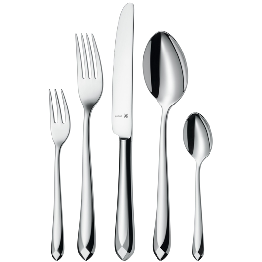 - Cromargan protect® - Nhờ hoàn thiện bề mặt đã được cấp bằng sáng chế, các vật dụng trong Bộ dao thìa dĩa cao cấp WMF Jette 30 món có khả năng chống trầy xước và các dấu hiệu sử dụng hàng ngày rất tốt. Các bề mặt được đánh bóng luôn sáng bóng, trong khi các bề mặt hoàn thiện mờ luôn mịn đẹp - cho vẻ đẹp bền bỉ.