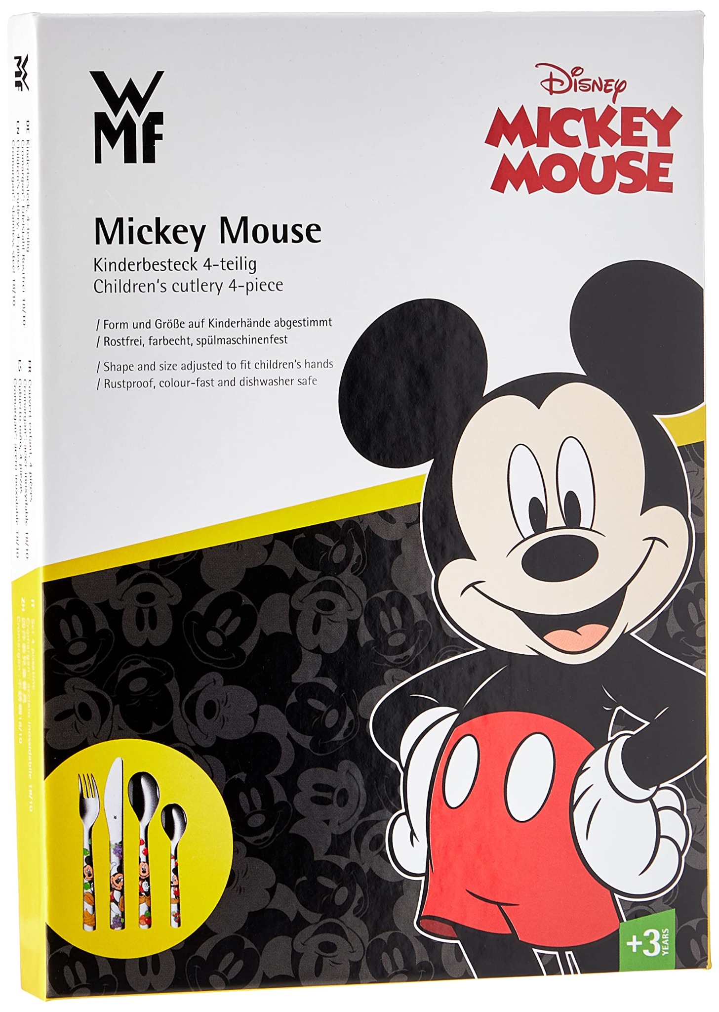 - Thiết kế Bộ dao thìa dĩa trẻ em WMF Disney Mickey Mouse 4 món thân thiện với trẻ em - WMF và Disney đã hợp tác cùng nhau để tạo ra một bộ dao kéo hoàn hảo cho trẻ em, với các họa tiết chuột Mickey được làm thủ công đáng yêu, độc đáo thân thiện với trẻ em và hình ảnh tuyệt vời cho trẻ nhỏ.