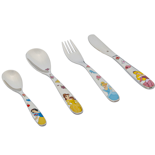 - Với Bộ đồ ăn trẻ em WMF Disney Princess 6 món, các em nhỏ học cách sử dụng dao, thìa và nĩa một cách vui tươi. Hơn 130 năm kinh nghiệm đã đi vào lĩnh vực dao kéo thân thiện với trẻ em được làm bằng thép không gỉ, cũng là nguồn cảm hứng với những cử chỉ, họa tiết và hình ảnh màu đầy yêu thương.