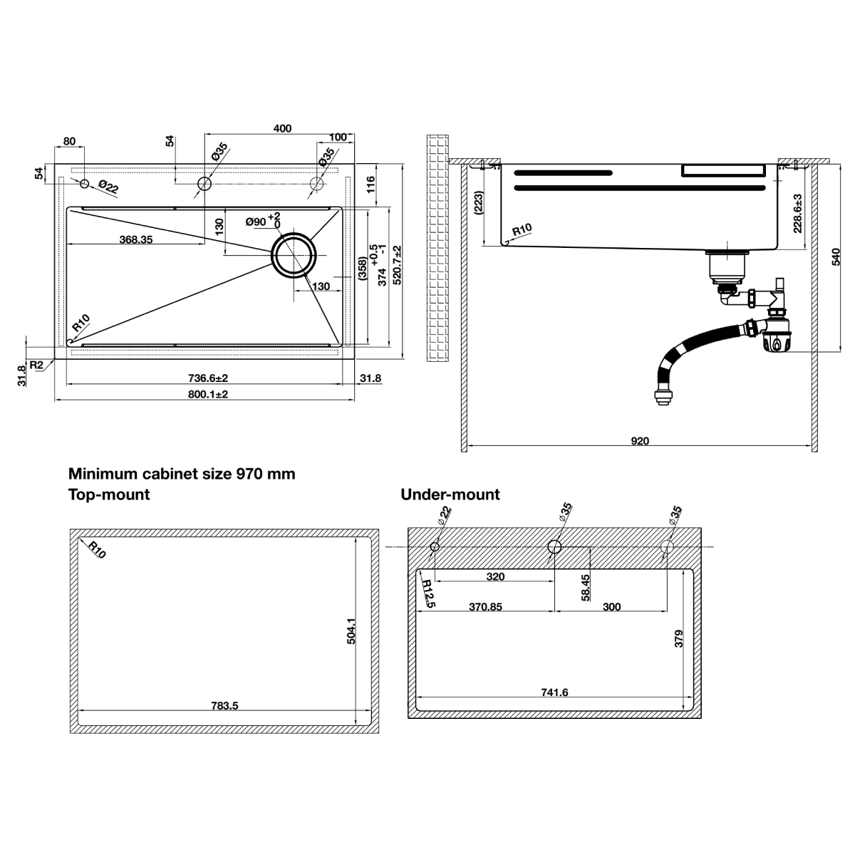 Lắp nổi, Lắp âm: trang bị phụ kiện đầy đủ để có thể dễ dàng lắp nổi/âm. Tích hợp với nhiều phụ kiện: thớt, rollmat, rổ, phụ kiện rửa ly (dòng chậu waterfall)