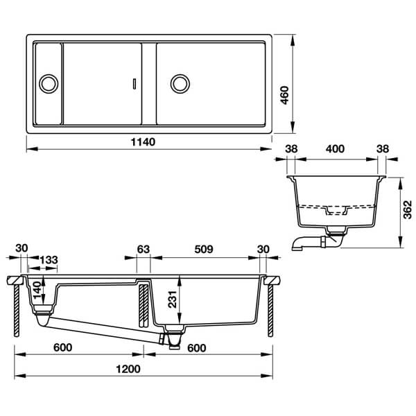 Kích thước hố chậu : 133Dx384R mm / 509D x 384R mm