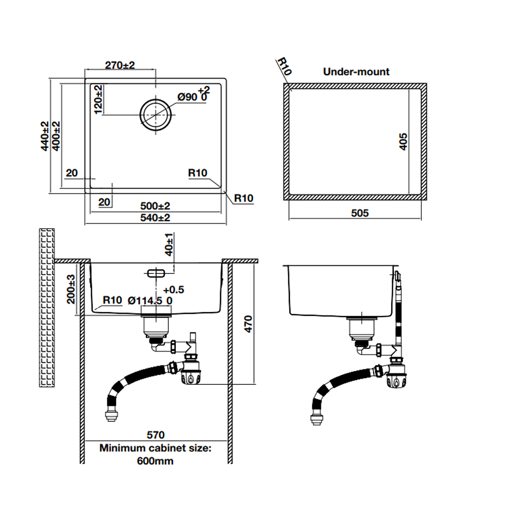 + Bộ siphon: có phễu ngăn mùi trong suốt giúp phát hiện nguyên nhân tắt rác, và ống mềm linh hoạt tạo thêm không gian trống cho tủ