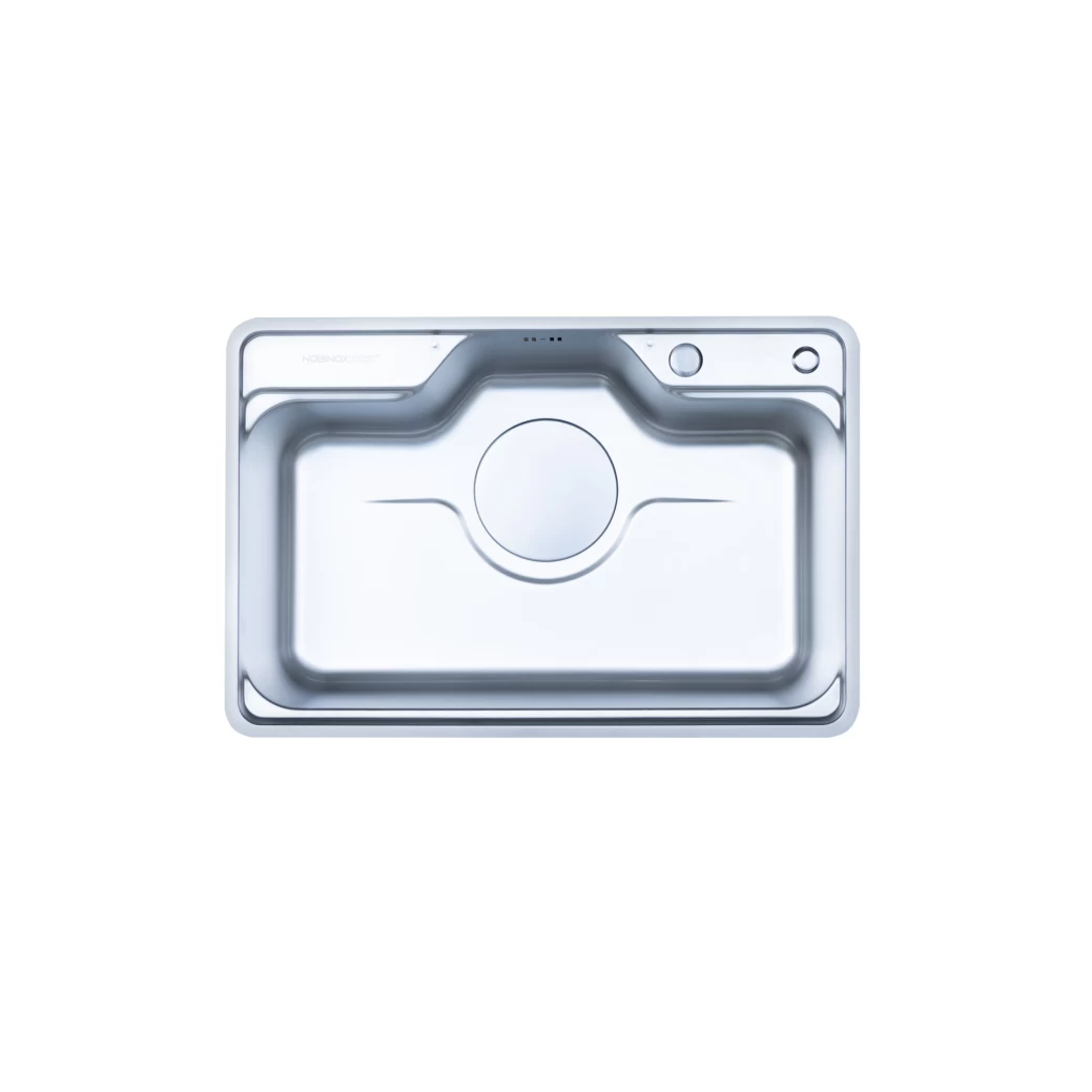 Chậu tạo nên từ thép không gỉ Inox 304 tạo độ sáng bóng vượt trội tạo cảm giác mượt mà đồng nhất trên toàn bộ bề mặt chậu bếp.