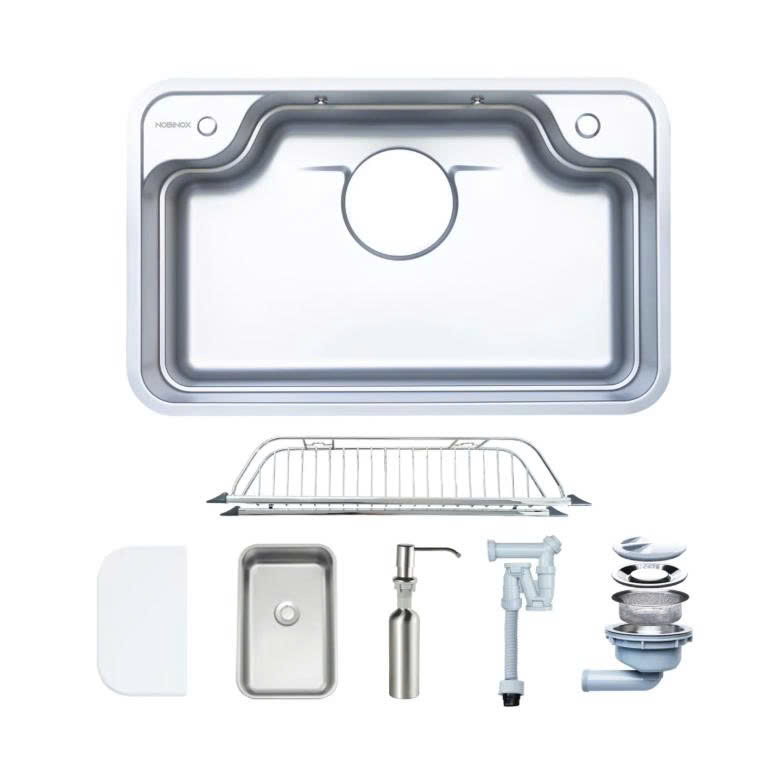 NOBINOX LIKEN NL790D được trang bị thêm bộ phụ kiện bao gồm thớt nhựa và rổ inox mang đến giải pháp toàn diện cho mọi nhu cầu sử dụng. Thớt nhựa an toàn vệ sinh, cho phép bạn sơ chế thực phẩm trực tiếp trên bồn rửa một cách tiện lợi. Khay inox dùng để ngâm rửa thực phẩm. Rổ inox là nơi úp chén bát hoặc thực phẩm giúp không gian bếp luôn khô ráo và gọn gàng. Với bộ phụ kiện đi kèm này, mọi thao tác trong bếp trở nên nhanh chóng, hiệu quả và đầy đủ tiện nghi, mang đến trải nghiệm hoàn hảo cho người nội trợ.