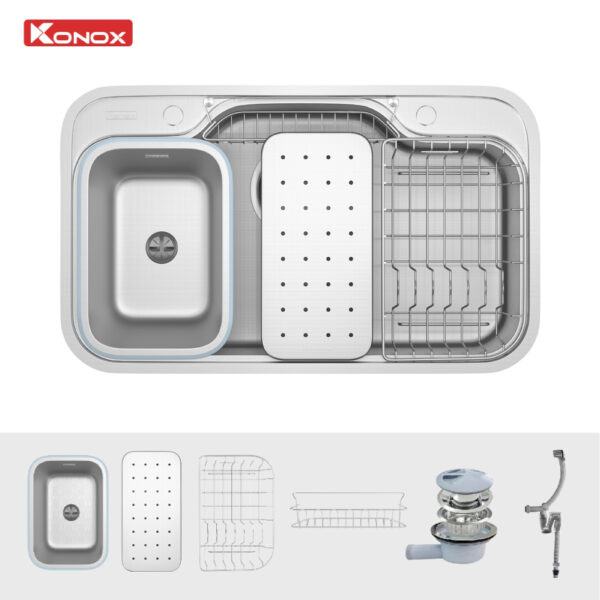 Chậu rửa bát 1 hố chống xước Konox Workstation Sink Dekor 8048SU là phiên bản mới nhất của bộ sưu tập chậu rửa bát chống xước ưu việt nhất của Konox – Dekor Series.