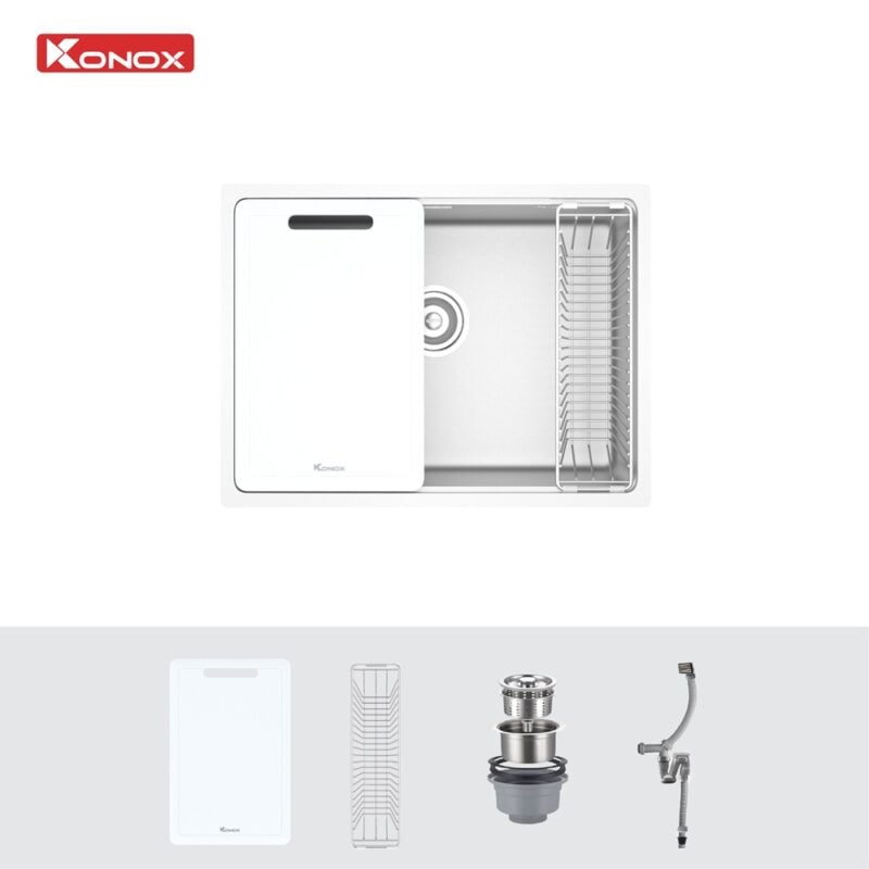 - Tích hợp phụ kiện thông minh: Thớt nhựa, rổ phụ, siphon
