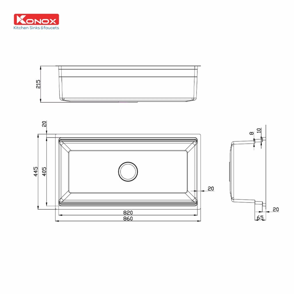 Konox trang bị thêm một chậu rửa nhỏ 380mm thiết kế theo kích thước bồn bếp để khách hàng trải nghiệm sơ chế đồ thuận lợi hơn khi nhu cầu rửa ít.