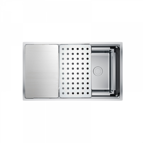 Thớt inox tích hợp dễ dàng trượt trên gờ hạ bậc. Chịu lực tốt, chất liệu inox 304 an toàn cho sức khỏe.