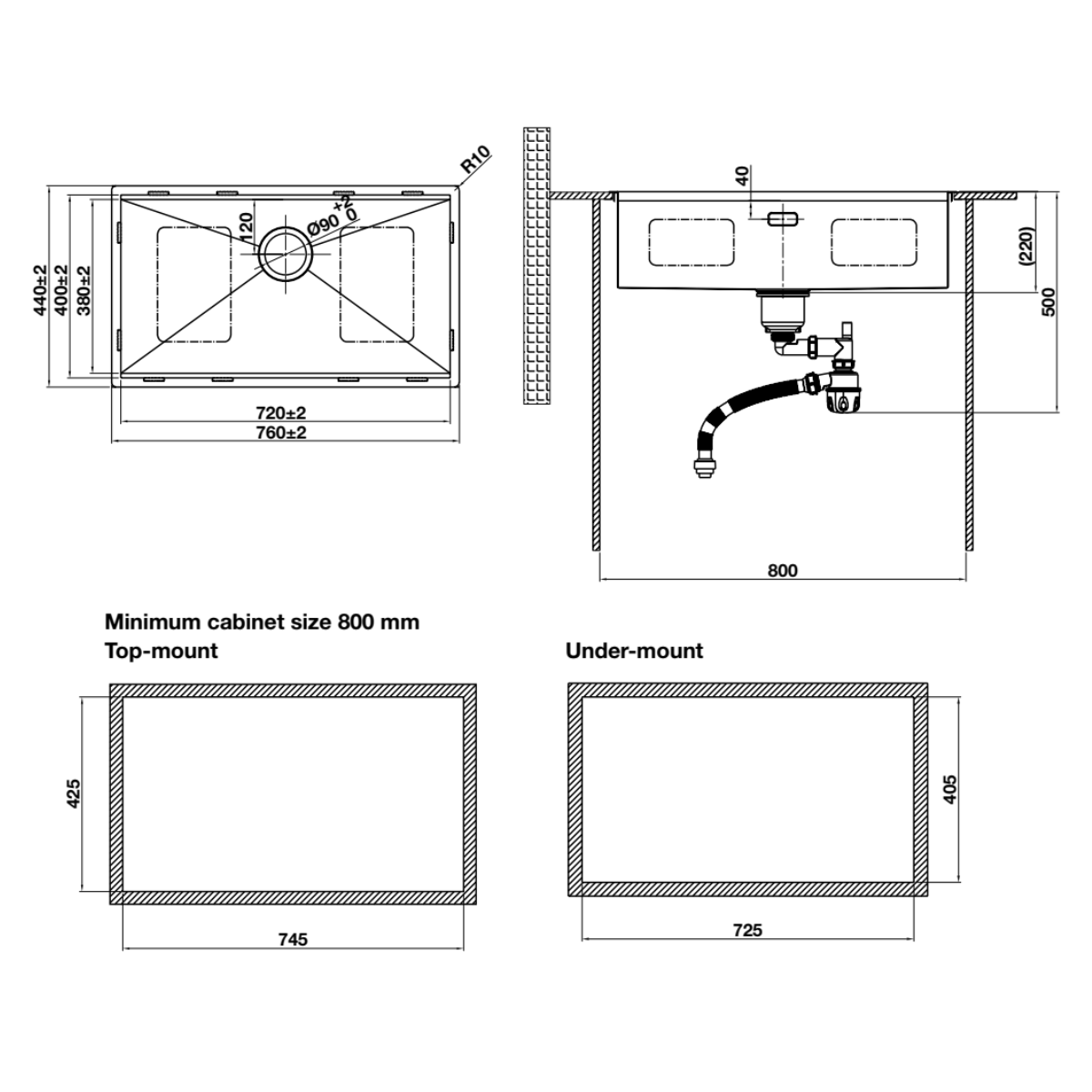 + Lắp âm: 725D x 405R mm