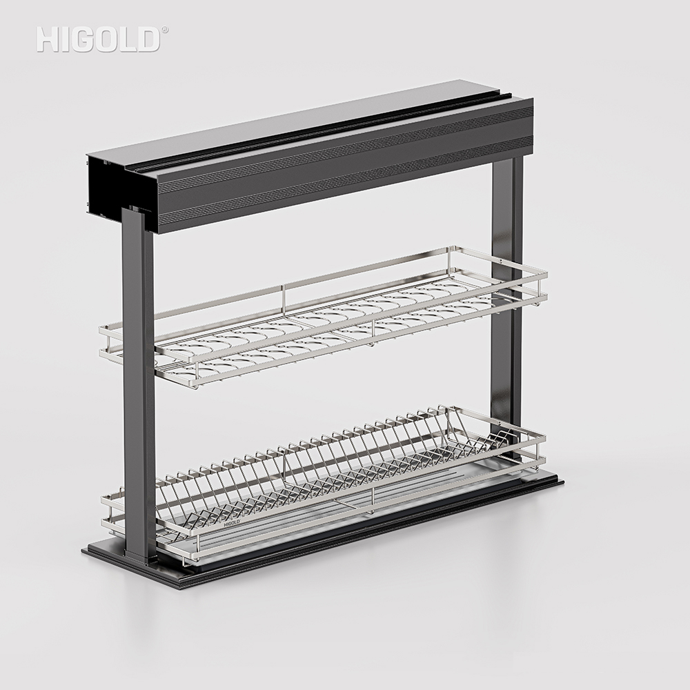 Cấu tạo 2 tầng với 2 chức năng: tầng trên úp bát, tầng dưới úp đĩa. Các thanh nan được cải tiến trong thiết kế và kích thước được đo lường chuẩn xác. Giúp cho bát đĩa luôn được úp thẳng đứng, không bị xô lệch hay bị rơi khỏi giá trong quá trình nâng lên/ hạ xuống từ tủ bếp trên.