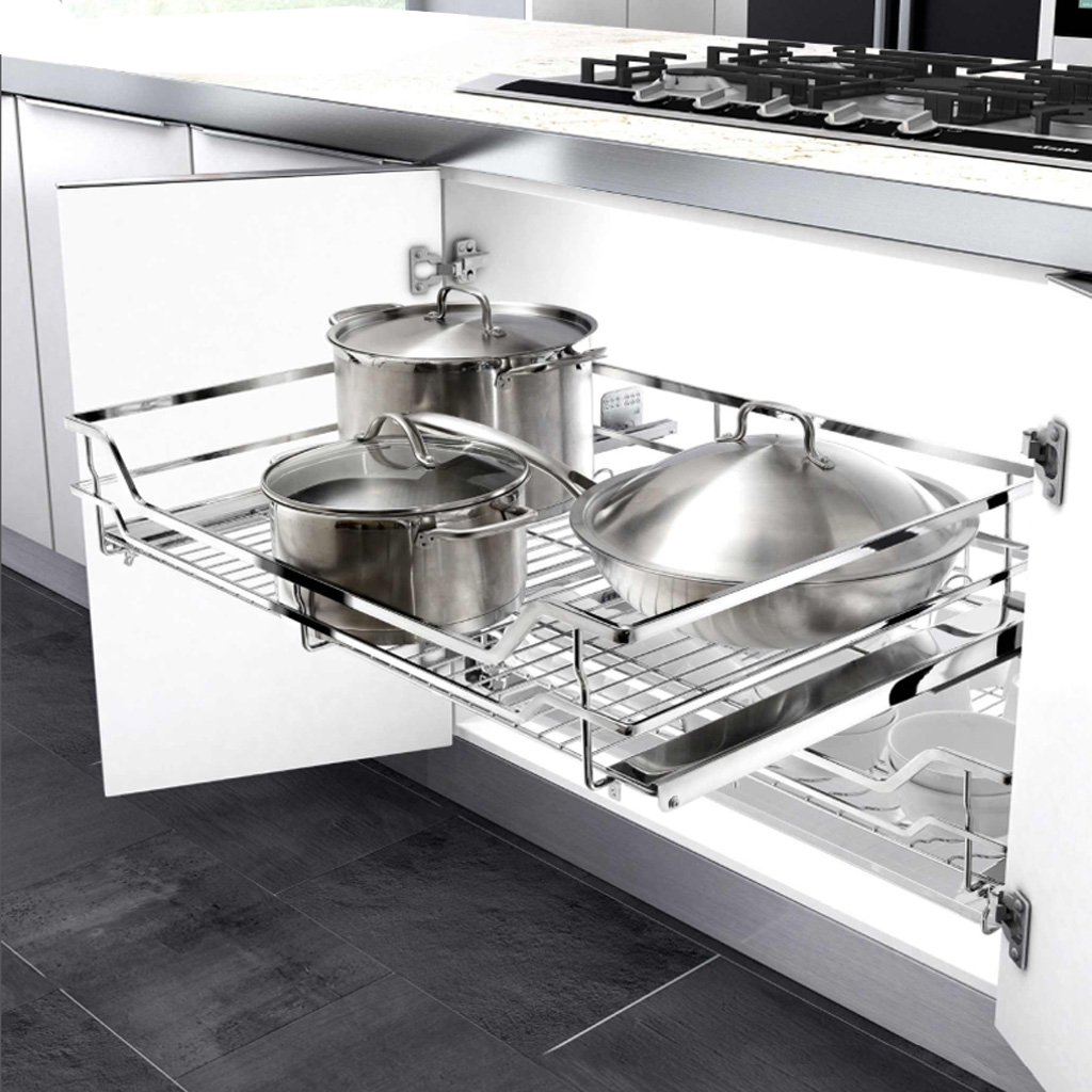 Thiết kế thông minh, tiện lợi: Kệ xoong nồi diamond ray giảm chấn inox 304 giúp tối ưu hóa không gian lưu trữ trong bếp, giúp bạn sắp xếp gọn gàng các loại gia vị, chai lọ, đồ khô, dụng cụ nhà bếp,...