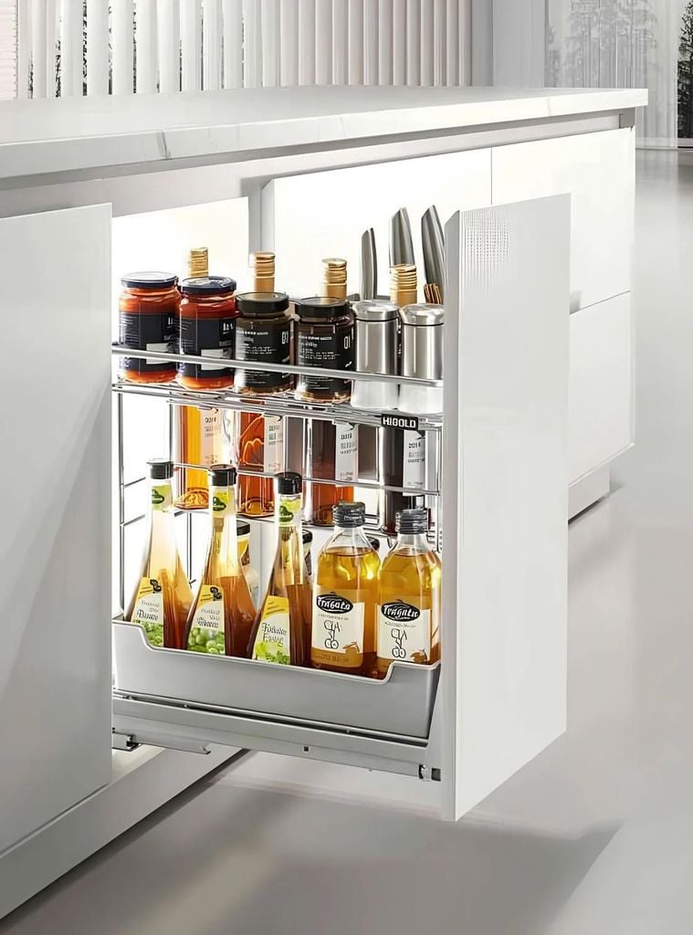 Với bộ gá này bạn có thể lắp đặt thêm cánh kéo với mọi chất liệu (gỗ, nhôm,...) theo đúng sở thích của bạn. Chỉ trong tích tắc thì giá để dao thớt gia vị đa năng của bạn có thể hô biến thành một ngăn kéo thật linh hoạt, gọn gàng, đẹp mắt và vô cùng đồng bộ, sang trọng.
