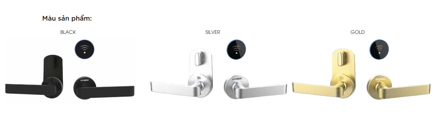 Khóa thẻ từ Hyundai HY-HL03 có 3 màu sắc: đen, vàng, bạc