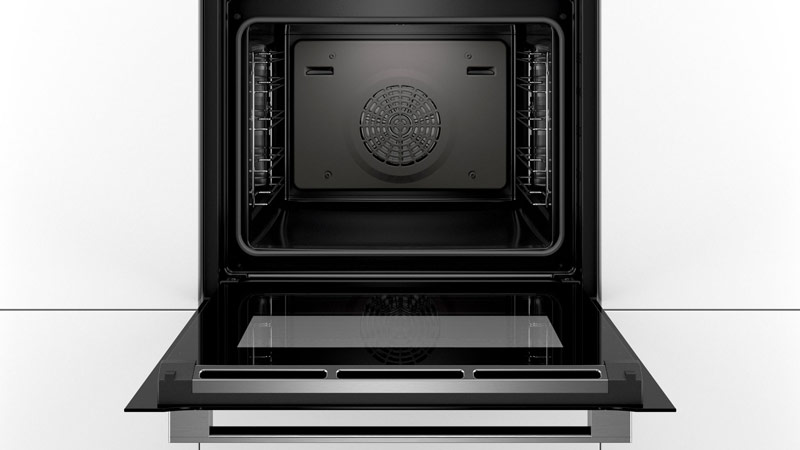 Cửa lò nướng giờ đây trở nên tiện lợi hơn bao giờ hết: Cơ chế giảm chấn đặc biệt giúp cửa lò không bị đóng sầm lại. Khi bạn nhẹ nhàng đẩy cửa lò, nó sẽ dừng ngay trước khi đóng và sau đó tự tắt nhẹ nhàng và yên tĩnh, do đó đảm bảo tuổi thọ lâu dài cho cả lò nướng và cửa lò của bạn.