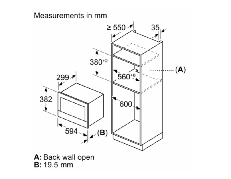 | Kích thước lắp đặt | 362–382 x 560–568 x 300 mm |