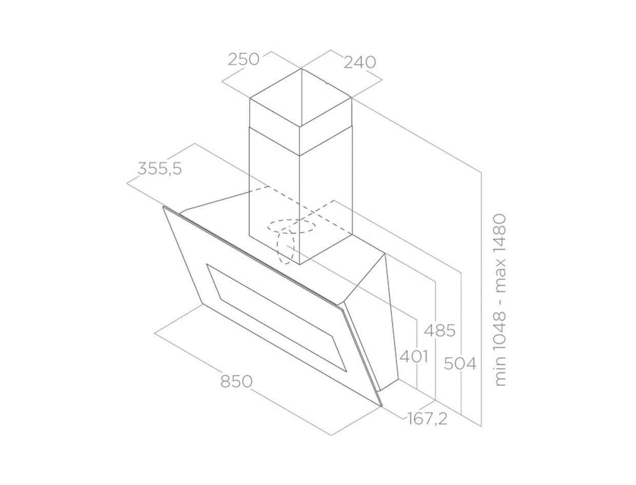 Hình ảnh kích thước máy hút mùi áp tường Elica BLOOM-S DEKT/A/85 PRF0164475