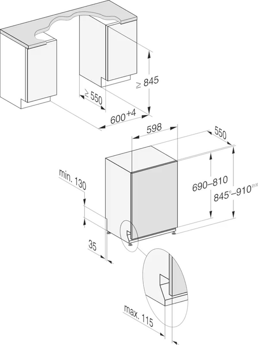 Kích thước (WxHxD) Kích thước hốc, tối thiểu khoảng 60 x 84,5 x 55 cm