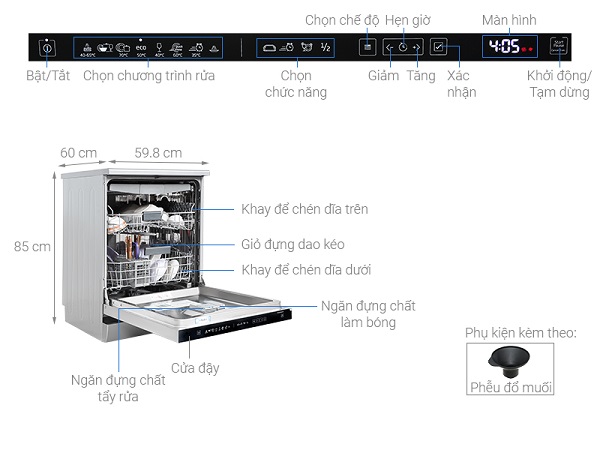 - Chương trình rửa: 8 chương trình chính và nhiều chức năng bổ sung.