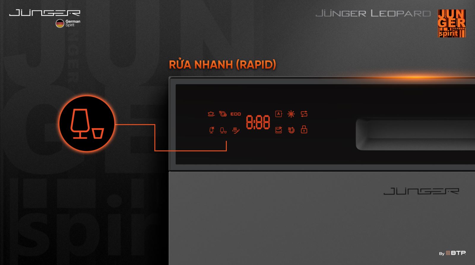 Công nghệ Junger Super AI Cleaning sẽ tự động được chọn mặc định khi bật máy, đây là công nghệ thông minh sử dụng trí tuệ nhân tạo AI, tự động đo độ bẩn của nước rửa, đo độ bẩn của bát đĩa, hệ thống vi xử lý thông minh sẽ tự động căn chỉnh lượng nước và thời gian rửa phù hợp với độ bẩn của bát đĩa giúp tiết kiệm tiết kiệm điện năng, thời gian và lượng nước đến 30% so với các máy rửa bát thông thường.