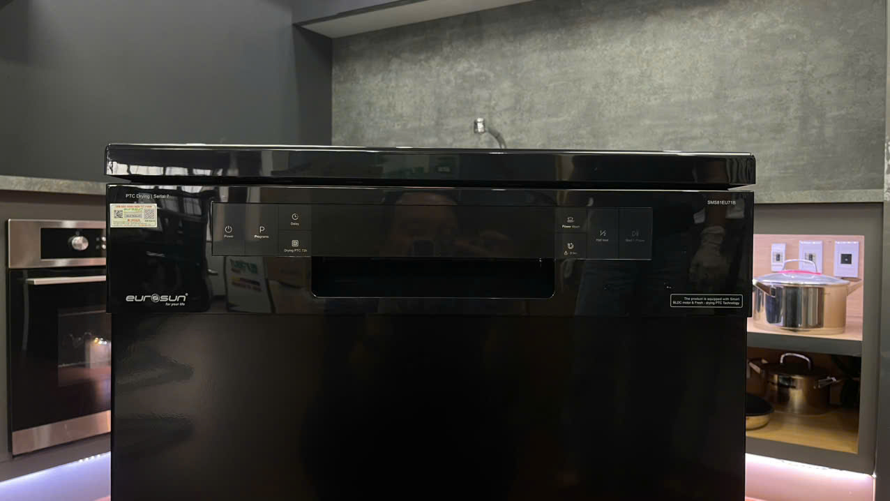 - Máy rửa bát EUROSUN SMS81EU71B, rửa tự động Auto 60-70°C, máy tự nhận diện độ bẩn và điều chỉnh nhiệt độ, nước, thời gian. Phù hợp rửa hằng ngày, tiện lợi và sạch tối ưu.