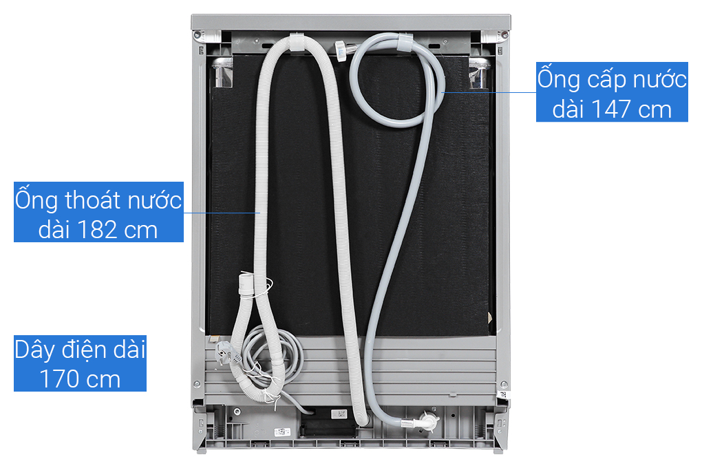 - Máy có khả năng rửa được khoảng 4 bữa ăn Việt với lượng nước tiêu thụ là 9.5 lít/lần rửa.