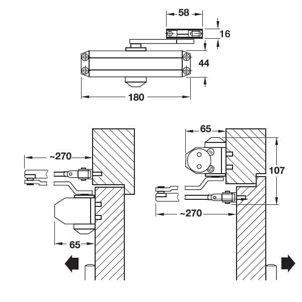 - Thiết bị đóng cửa Hafele 931.84.659 DCL11 thích hợp cho cửa mở trái và mở phải