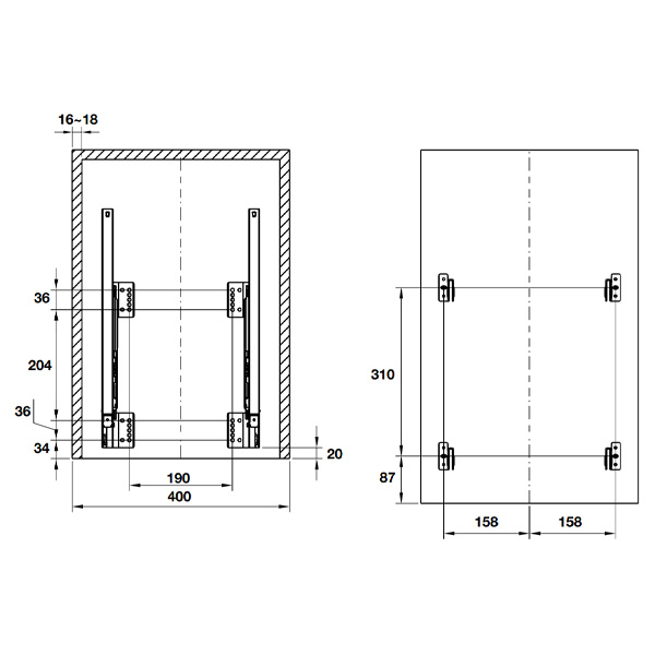 >> Chiều rông khoang tủ: 400mm