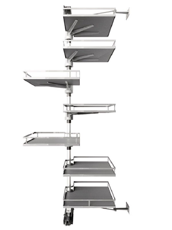 + Hệ thống rổ xoay di chuyển toàn bộ ra phía trước tủ để thuận tiện sắp xếp và lấy đồ dùng