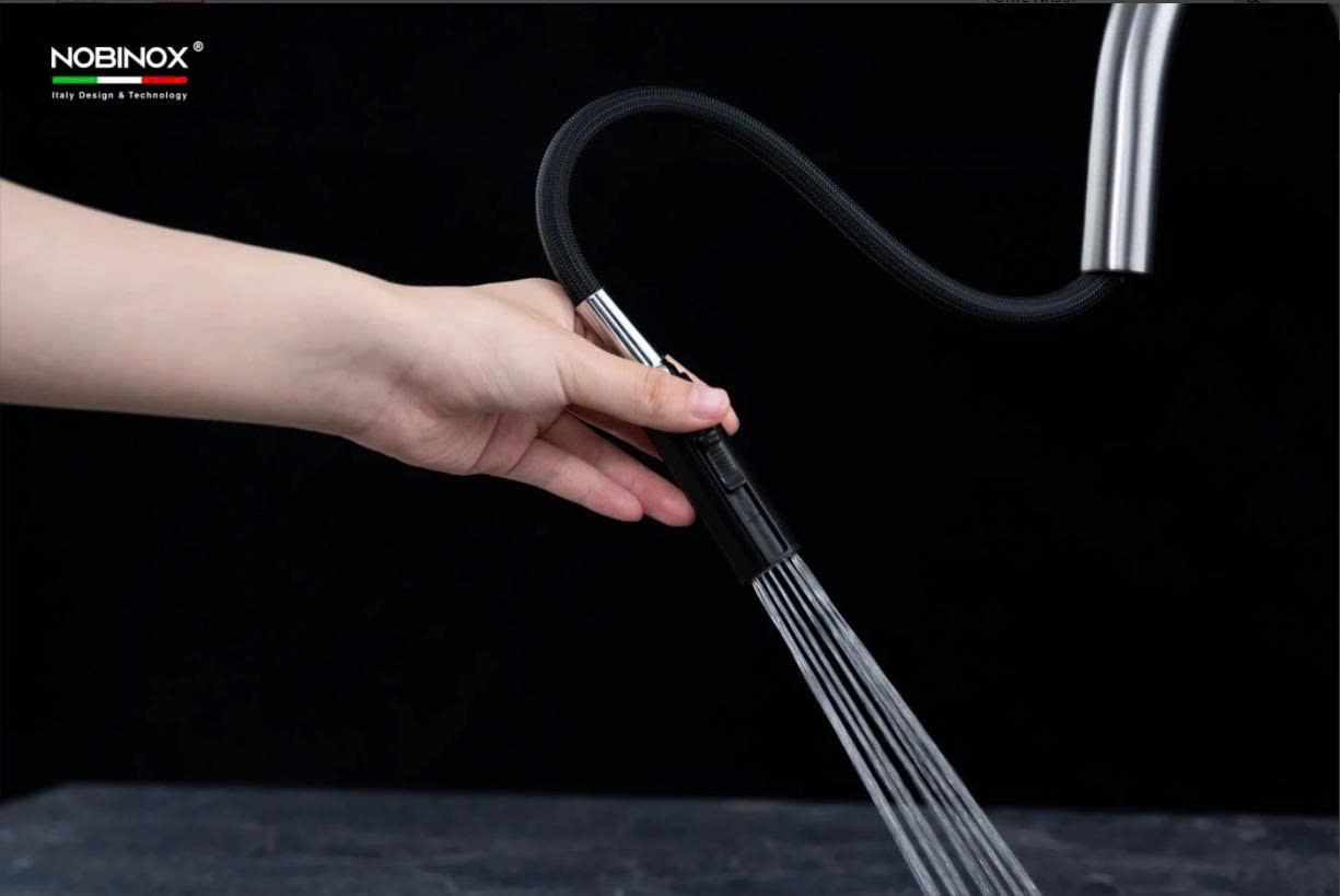 - Vòi bếp dây rút nóng lạnh xoay 360 độ cho phạm vi tiếp cận lớn, linh hoạt sử dụng trong thao tác bếp.
