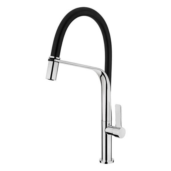 Điểm đặc biệt trong thiết kế là cổ vòi bằng cao su chịu nhiệt, màu đen sang trọng, dễ dàng vệ sinh vết bẩn nhanh chóng sau mỗi lần rửa.